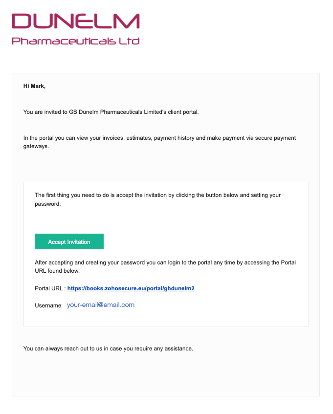 Check your email for your invitation to the customer portal. Click the green button to “Accept Invitation”
