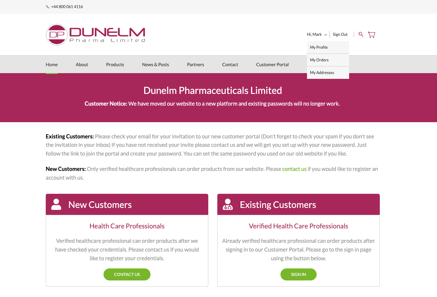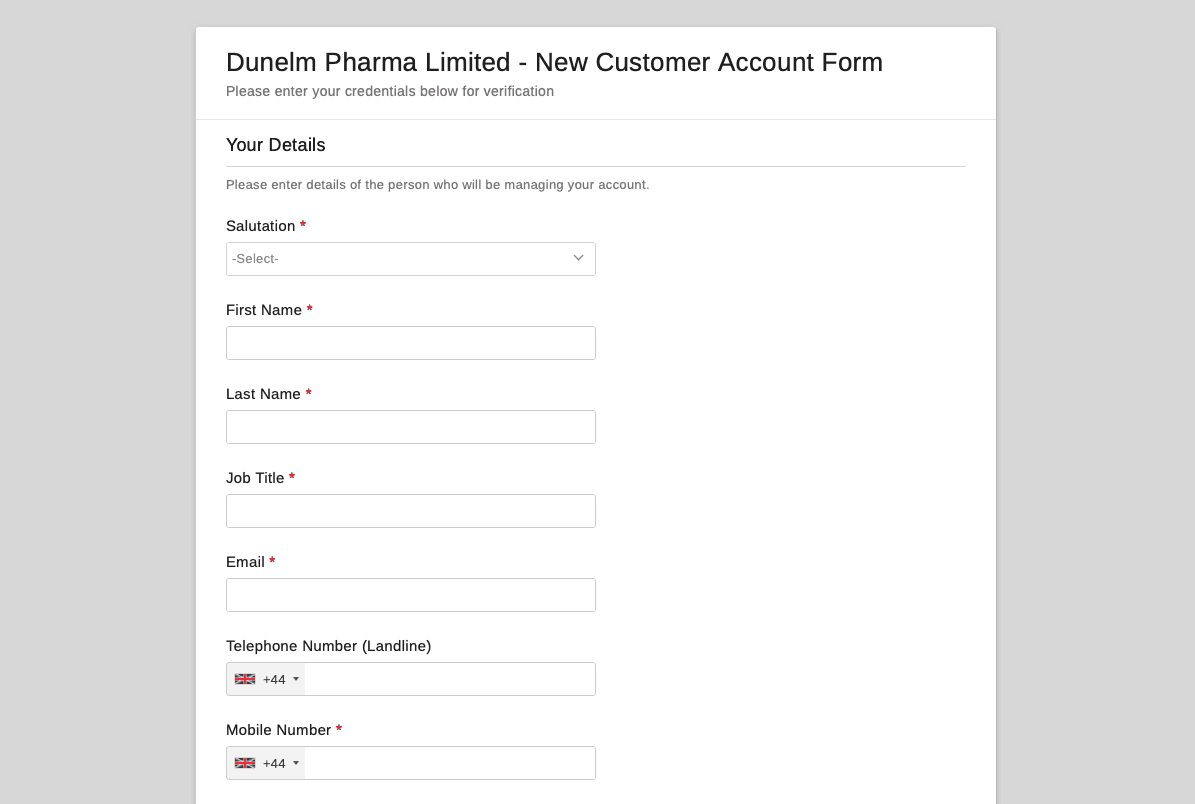 Healthcare Professionals can order products from Dunelm Pharma Ltd. by gaining access to the customer portal.