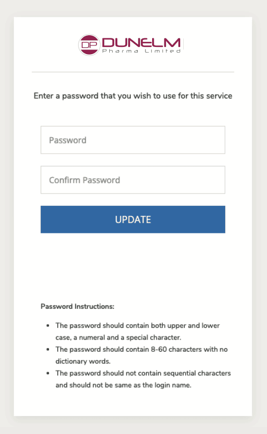 This will open up the portal login. All you need to do is create your password, click “Update” and you